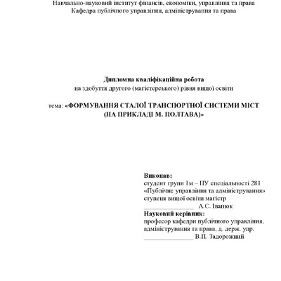 Формування сталої транспортної системи міст (на прикладі м. Полтава)