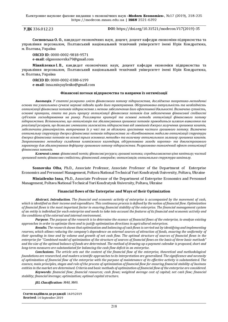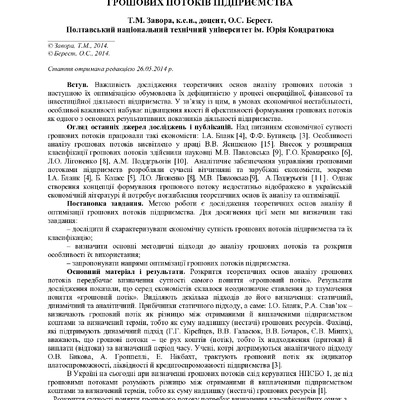 Стаття 2024/05/23Фінансові потоки підприємства та напрями їх оптимізації