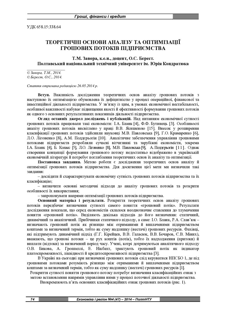Стаття 2018/10/15Теоретичні основи аналізу та оптимізації грошових потоків підприємства