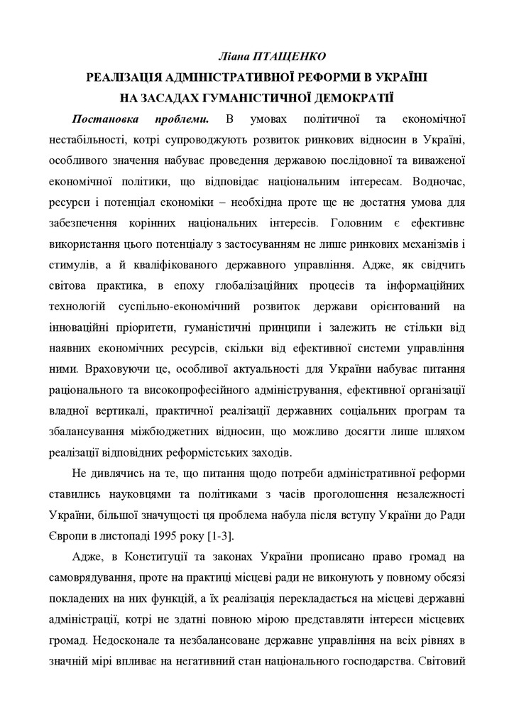 Реалізація адміністративної реформи в Україні на засадах гуманістичної демократії