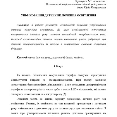 В роботі розглянуті особливості побудови уніфікованого датчика включення освітлення. До його особ...