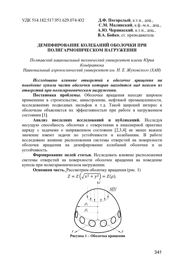 Исследовано влияние отверстий в оболочке вращения на поведение купола части оболочки которая нахо...
