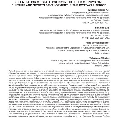 2025/10/16Оптимізація державної політики у сфері розвитку фізичної культури та спорту в післявоєнний період