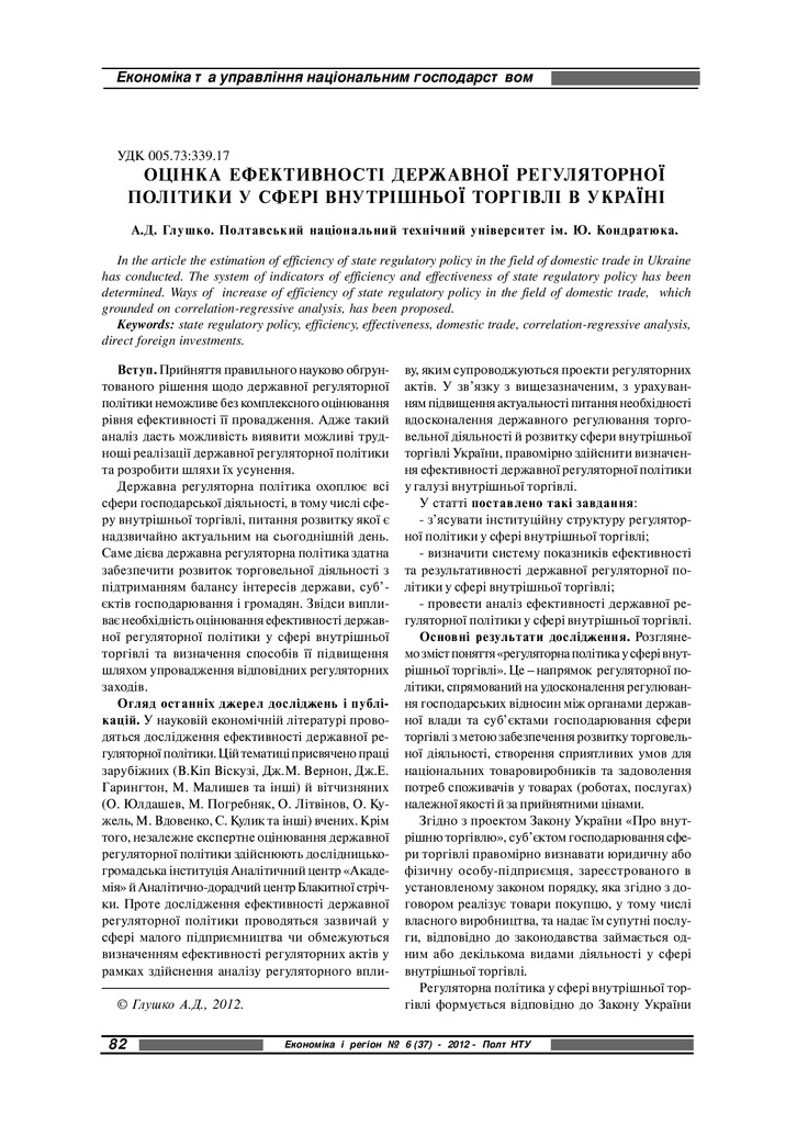 Оцінка ефективності державної регуляторної політики у сфері внутрішньої торгівлі в Україні