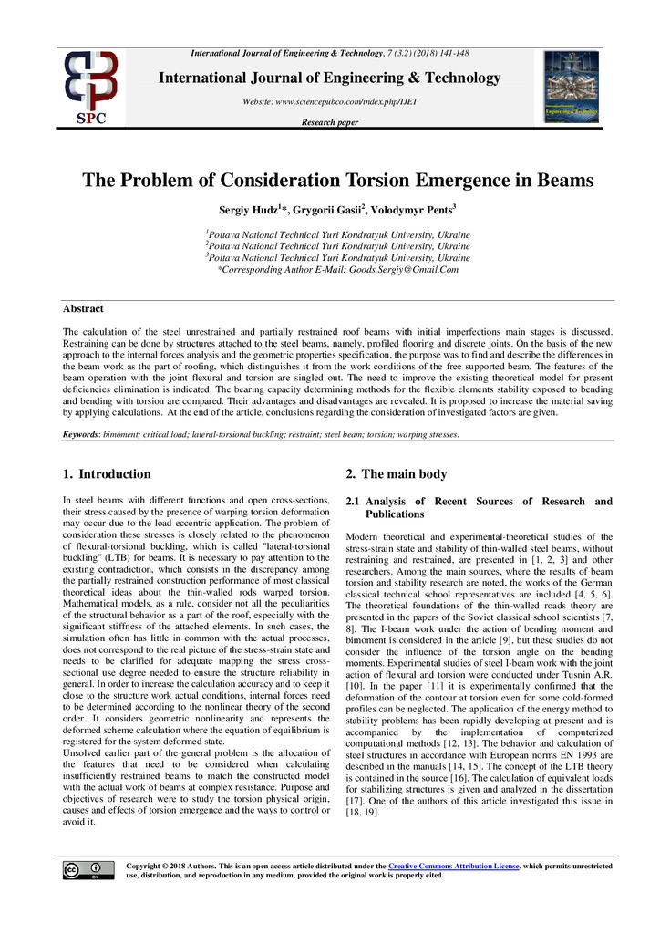 The Problem of Consideration Torsion Emergence in Beams