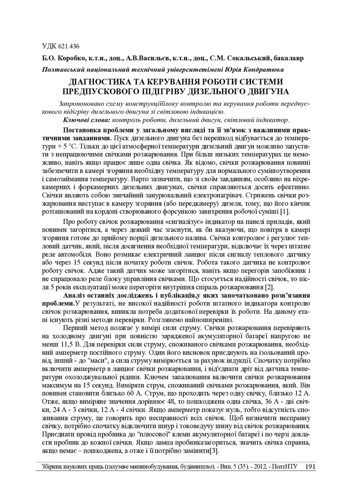 Запропоновано схему конструкціїблоку контролю та керування роботи передпускового підігріву дизель...