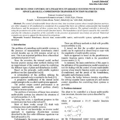 Стаття 2019/11/18Discrete-time control of linear multivariable systems with either singular or ill-conditioned transfer function matrices