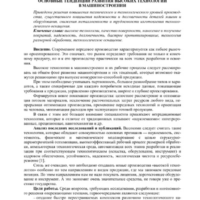 Основные тенденции развития высоких технологий в машиностроении