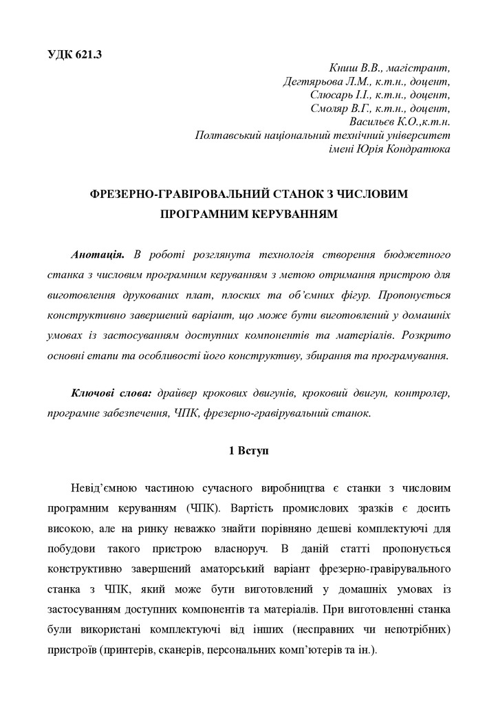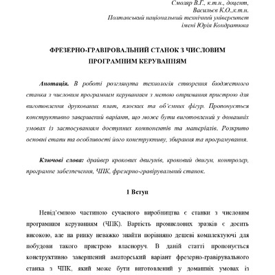 В роботі розглянута технологія створення бюджетного станка з числовим програмним керуванням з мет...
