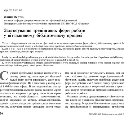 2025/06/30Застосування тренінгових форм роботи у вітчизняному бібліотечному процесі