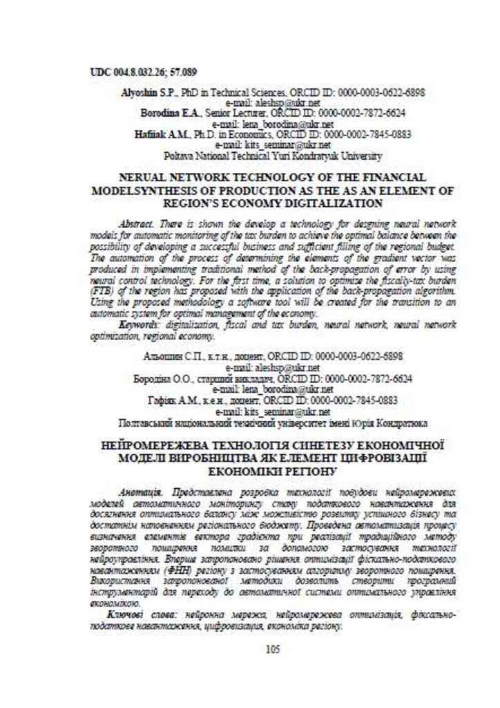 Представлена розробка технології побудови нейромережевих моделей автоматичного моніторингу стану податкового навантаження для досягнення оптимального балансу між можливістю розвитку успішного бізне...