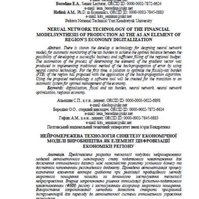 Nerual network technology of the financial modelsynthesis of production as the as an element of region’s economy digitalization