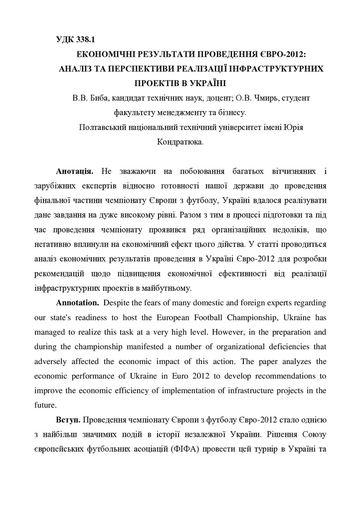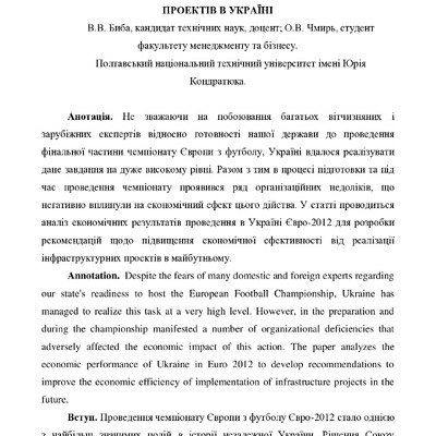 Економічні результати проведення Євро-2012: Аналіз та перспективи реалізації інфраструкту-рних проектів в Україні