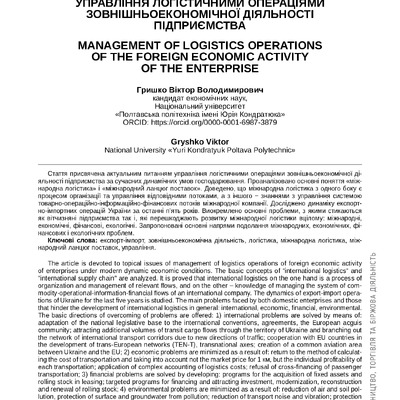 Управління логістичними операціями зовнішньоекономічної діяльності підприємства