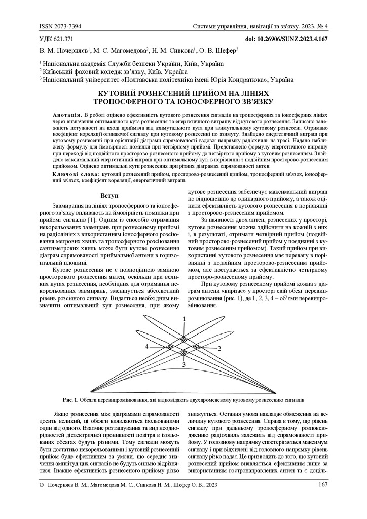 В роботі оцінено ефективність кутового рознесення сигналів на тропосферних та іоносферних лініях ...
