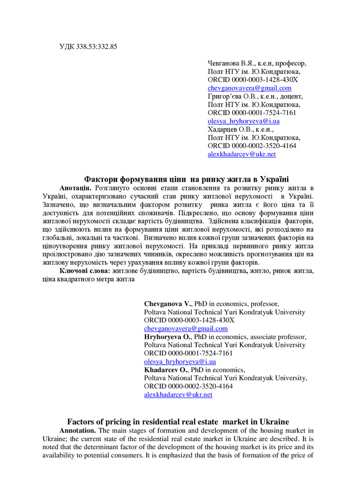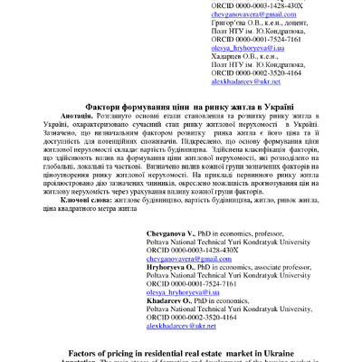 Стаття 2019/07/01Фактори формування ціни на ринку житла в Україні