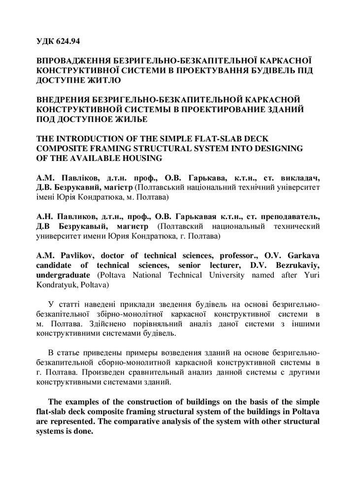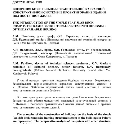 Стаття 2021/05/28Впровадження безригельно-безкапітельної каркасної конструктивної системи в проектування будівель під доступне житло