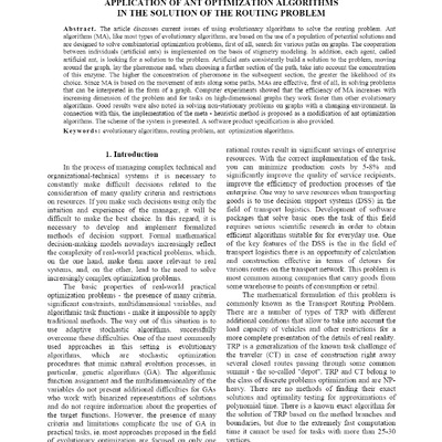 The article discusses current issues of using evolutionary algorithms to solve the routing proble...