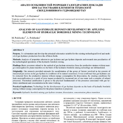 Аналіз особливостей розробки газогідратних покладів при застосуванні елементів технології свердловинного гідровидобутку