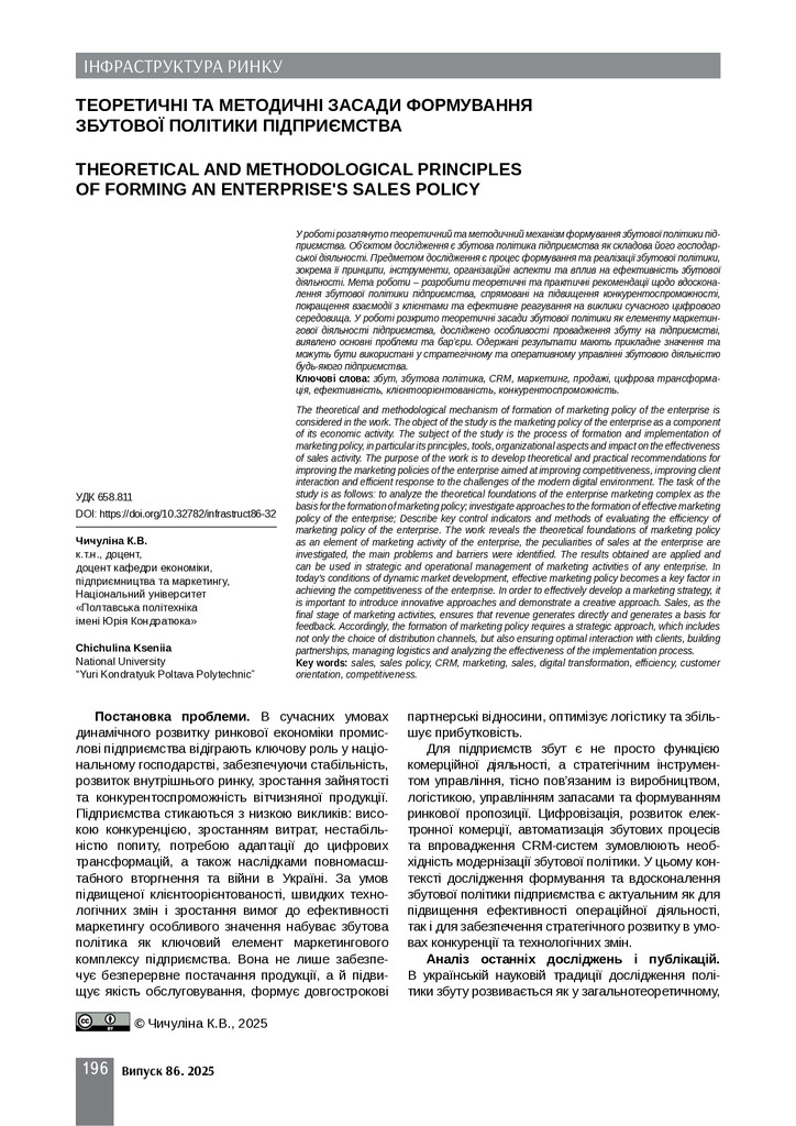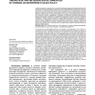 Стаття 2024/05/20Формування збутової політики на промисловому підприємстві (на матеріалах ТОВ „Виробниче підприємство „ДІАГОНАЛЬ”)