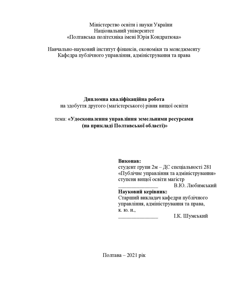 Удосконалення управління земельними ресурсами (на прикладі Полтавської області)