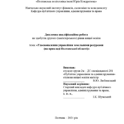 Стаття 2023/10/26Удосконалення управління земельними ресурсами (на прикладі Полтавської області)