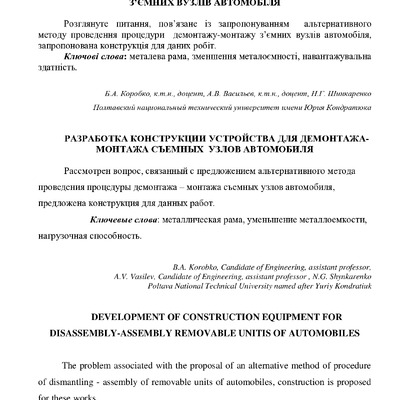 Розробка конструкції пристрою для демонтажу-монтажу з’ємних вузлів автомобіля