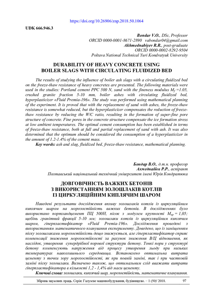 Вплив золошлаків котлів із циркуляційним киплячим шаром на морозостійкість важких бетонів