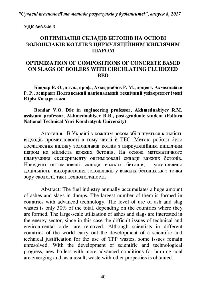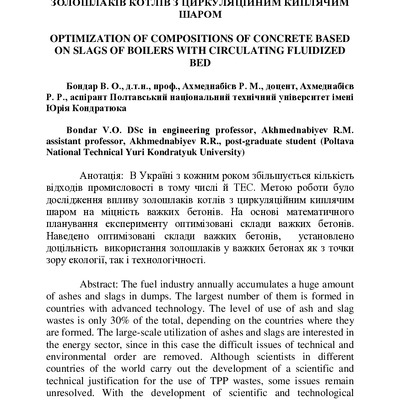Оптимізація складів бетонів на основі золошлаків котлів з циркуляційним киплячим шаром