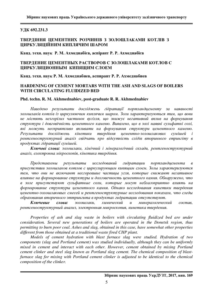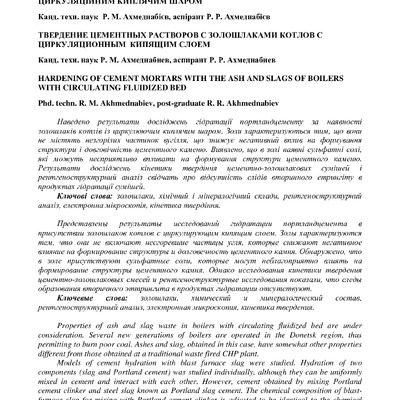 Стаття 2021/04/21Твердіння цементних розчинів з золошлаками котлів з циркуляційним киплячим шаром