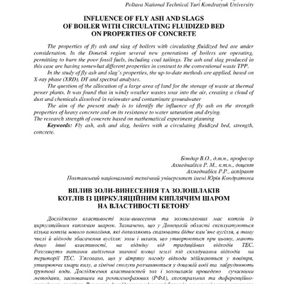 Описано дослідження властивостей важкого бетону з використанням золошлаків котлів з циркуляційним...