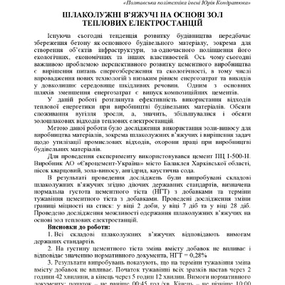 Шлаколужні в’яжучі на основі зол теплових електростанцій