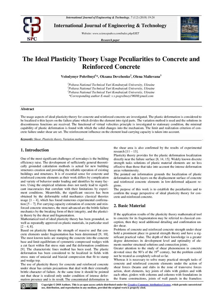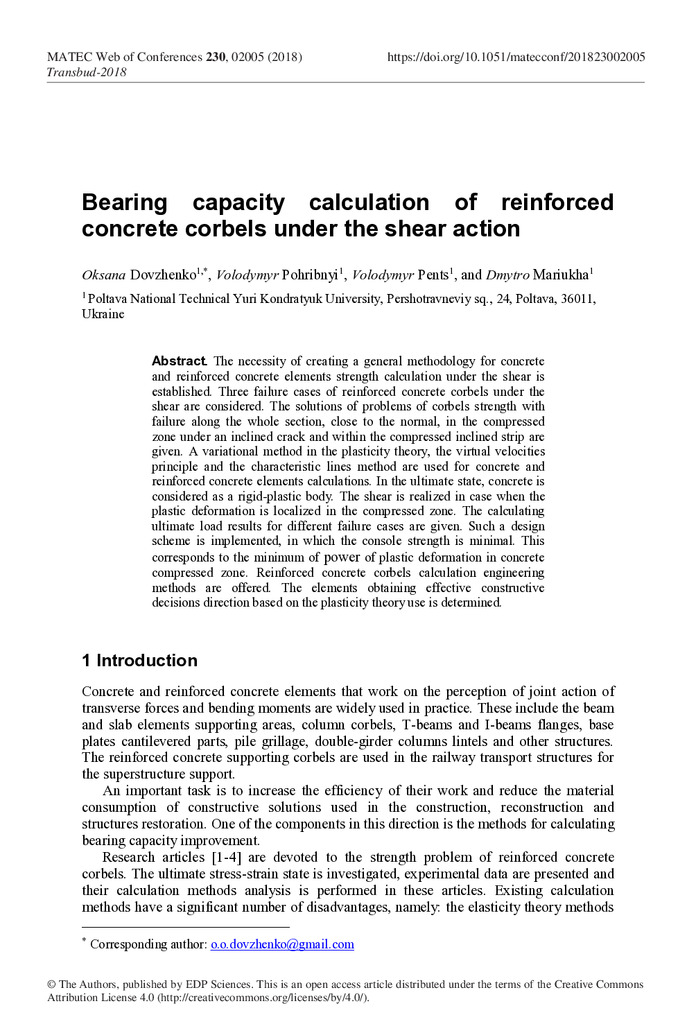 2020/07/01Concrete and reinforced concrete strength under action of shear, crushing and punching shear