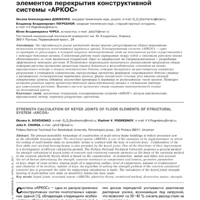 2018/04/10Расчет прочности шпоночных соединений элементов перекрытия конструктивной системы «АРКОС»