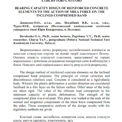 Запропоновано метод розрахунку залізобетонних елементів за похилою стиснутою смугою на основі тео...