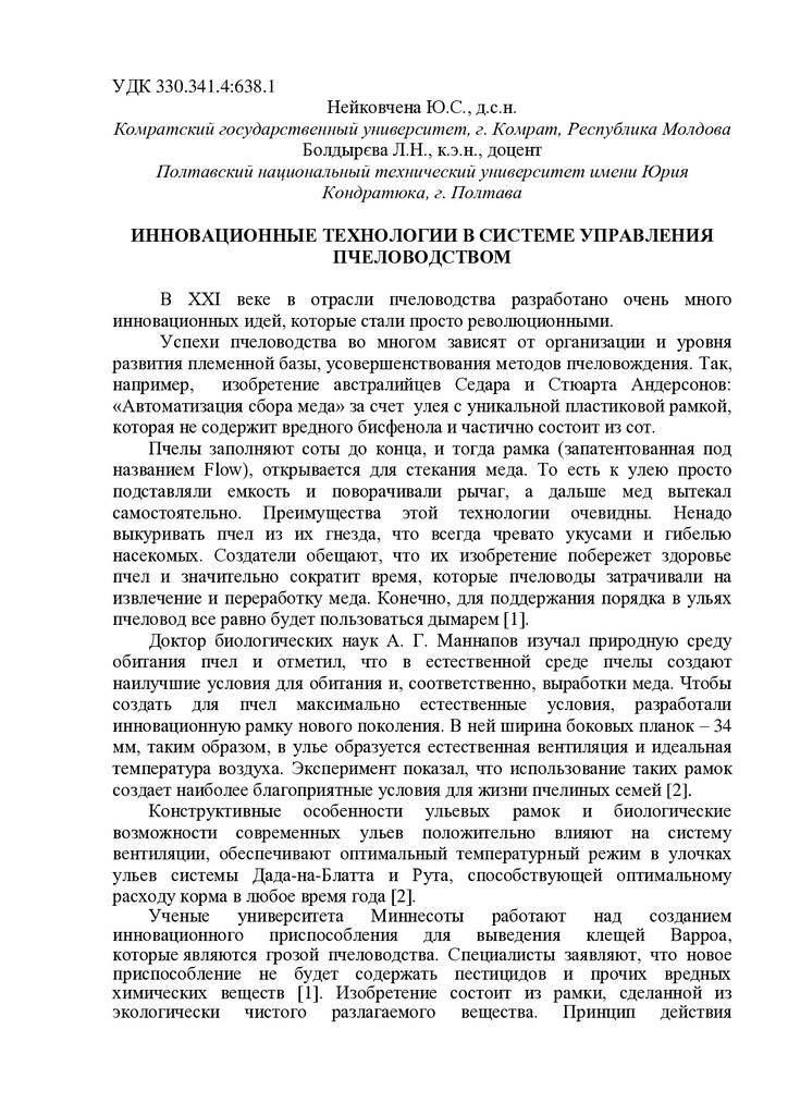 Стаття 2017/05/03Инновационные технологии в системе управления пчеловодством