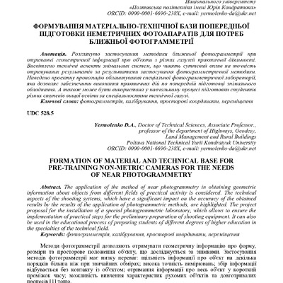 Формування матеріально-технічної бази попередньої підготовки неметричних фотоапаратів для потреб ближньої фотограмметрії