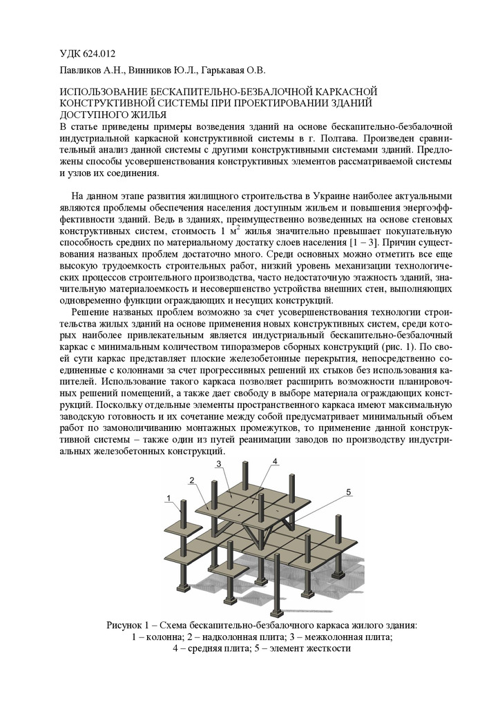 Стаття 2018/06/26Использование бескапительно-безбалочной каркасной конструктивной системы при проектировании зданий доступного жилья