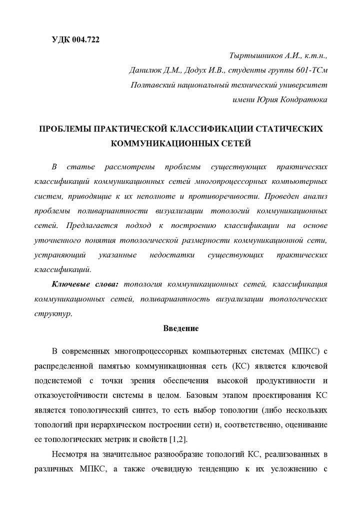 Стаття 2017/10/10Класифікація комунікаційних мереж багатопроцесорних комп'ютерних систем на основі уточненого поняття розмірності