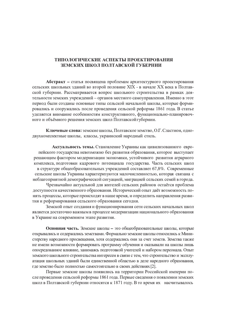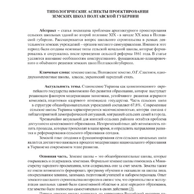 Типологические аспекты проектирования земских школ Полтавской губернии
