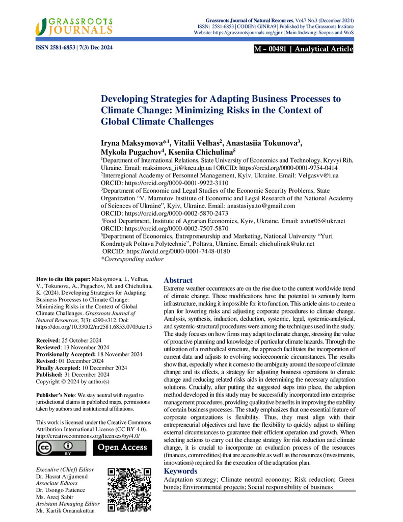Developing Strategies for Adapting Business Processes to Climate Change: Minimizing Risks in the Context of Global Climate Challenges