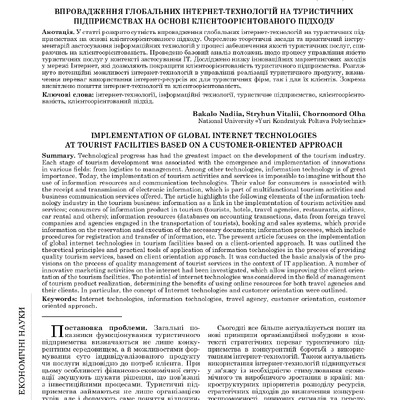 Впровадження глобальних інтернет-технологій на туристичних підприємствах на основі клієнтоорієнтованого підходу