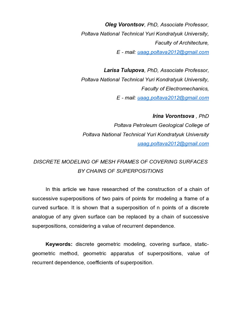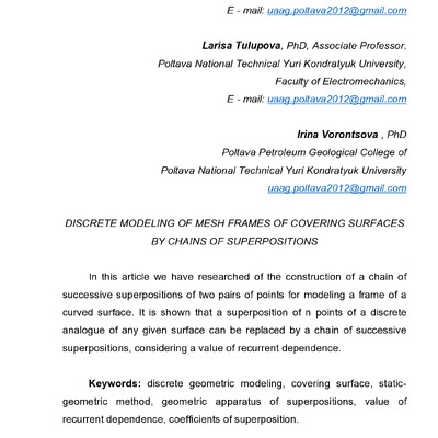 Стаття 2020/07/09Discrete modeling of mesh frames of covering surfaces by chains of superpositions