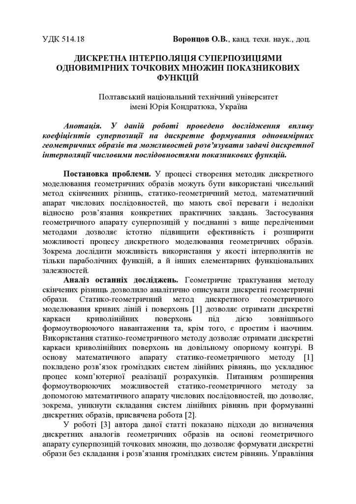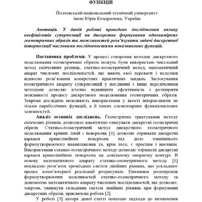 У даній роботі проведено дослідження впливу коефіцієнтів суперпозиції на дискретне формування одновимірних геометричних образів та можливостей розв’язувати задачі дискретної інтерполяції числовими ...