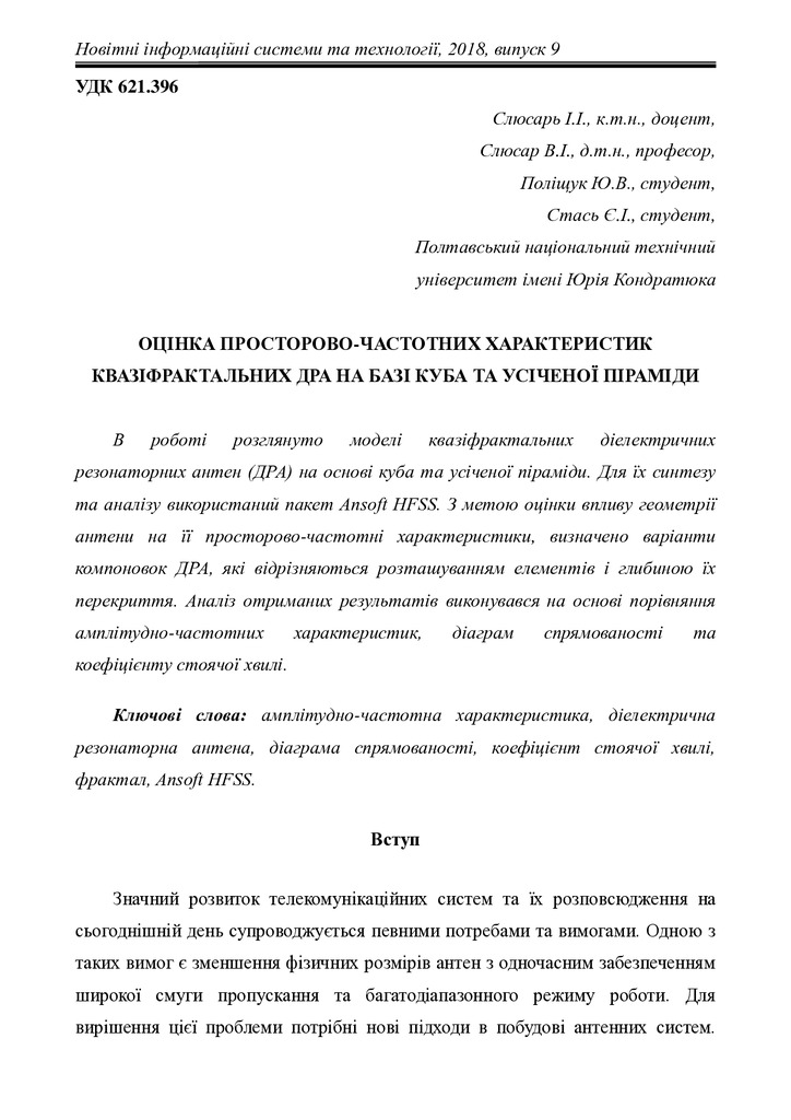 2018/07/12Оцінка просторово-частотних характеристик квазіфрактальних ДРА на базі куба та усіченої піраміди.