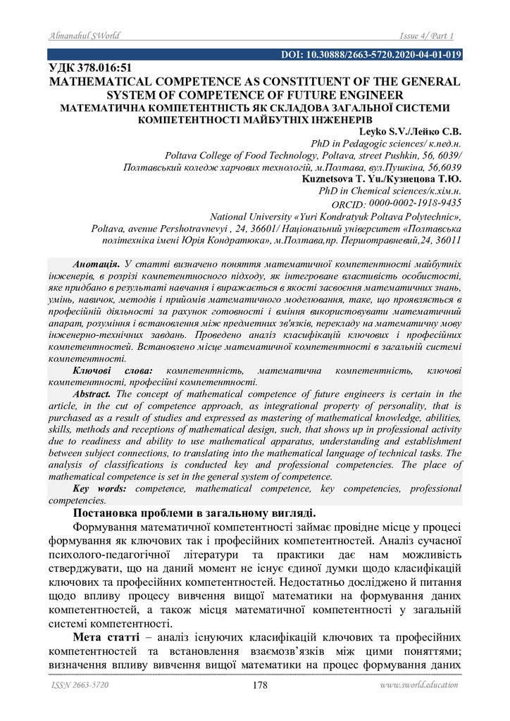 2020/07/23Математична компетентність як складова загальної системи компетентності майбутніх інженерів
