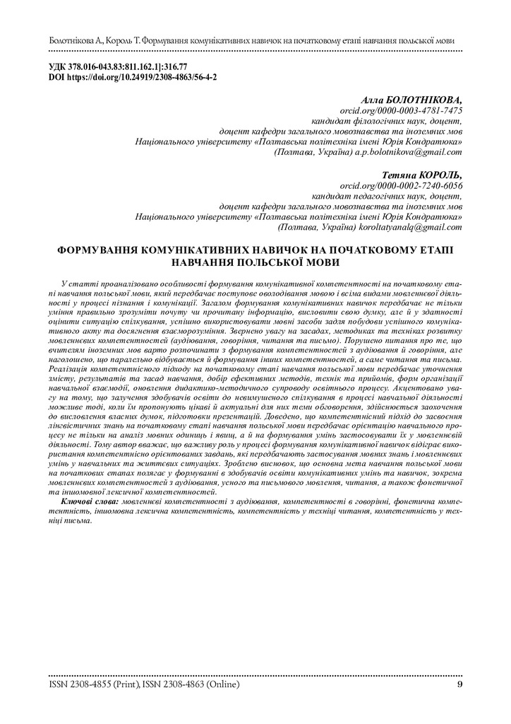 Формування комунікативних навичок на початковому етапі навчання польської мови