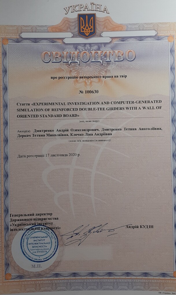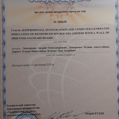 Стаття 2024/04/11Свідоцтво про реєстрацію авторського права № 100630 на твір