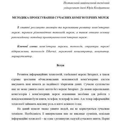 В статті розглянуто еволюцію та перспективи розвитку комп’ютерних мереж, переваги різноманітних топологій мереж, а також описано основну рекомендовану методику проектування комп’ютерних мереж.