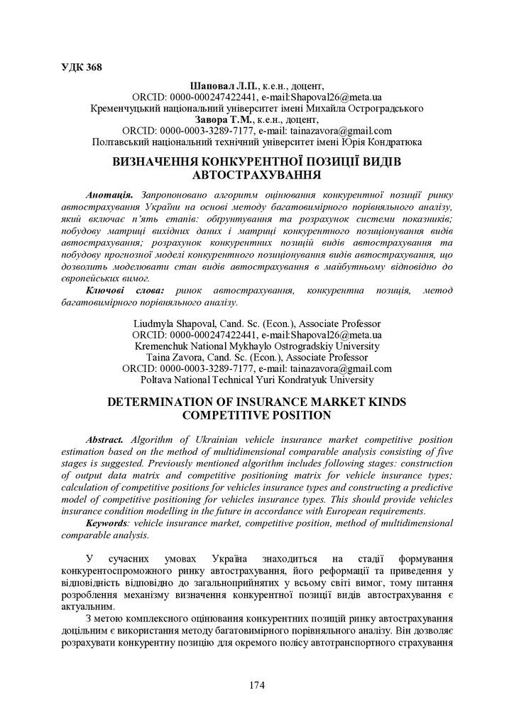 Стаття 2021/07/06Визначення конкурентної позиції видів автострахування